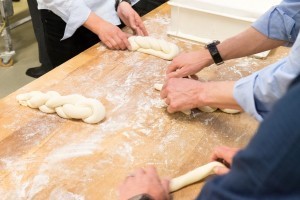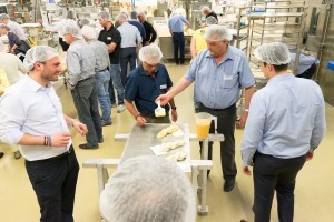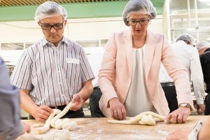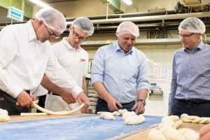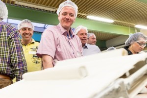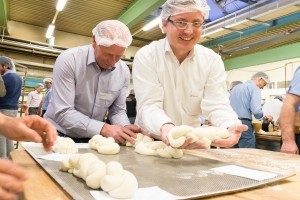 Im Anschluss an die Generalversammlung 2016, die kurze 30 Minuten dauerte, hiess Bäckermeister Bernhard Steiner das Wirtschaftsforum in seinem Betrieb willkommen, gab einen Überblick über seine Familien-AG, die heute rund 450 Mitarbeitende umfasst und die gesamte Produktion in Wetzikon fährt, lud zu einem höchst interessanten Rundgang durch den Betrieb ein und überraschte dann seine Gäste mit der Einladung/Aufforderung, einen eigenen Zopf zu flechten und zu backen … Geschäftsführer Bernhard Steiner und Sohn Marco waren gerne bereit, die verlorenen/vergessenen Künste des «Zöpfelns» wieder aufzufrischen. Die Überraschung war geglückt, die Mitglieder von Idee und Durchführung begeistert, wie sich am abschliessenden Apéritif im Café Steiner unschwer feststellen liess.