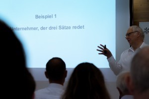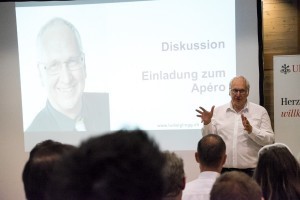 Er hatte sich für den Anlass ein Thema vorgenommen, das den Zuhörerkreis sichtlich interessierte und packte: „Storytelling – in fünf Schritten zum Erfolg“. Wer heute in einem Unternehmen – ob klein oder gross – erfolgreich sein will, muss sich – immer mit guten, eingehenden Geschichten – positionieren, kreieren, inszenieren, verbreiten und schliesslich messen. Der Referent verstand es mit interaktiven Unterbrechungen, seine Theorie – aus zeitlichen Gründen ansatzweise – von der Praxis bestätigt zu sehen und bot damit Anlass zu ausgiebigen Diskussionen und Fragen während des anschliessenden Networkings mit Apéro Riche, vom Restaurant IWAZ einmal mehr „riche“ d.h. grosszügig aufgetischt.