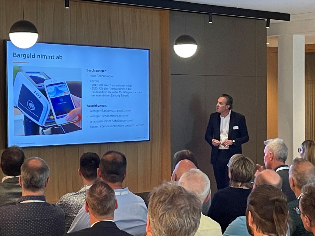 Nach dem herzlichen und sympathischen Empfang gab uns André Wegmann, Vorsitzender der Geschäftsleitung, einen Einblick in die spannende Geschichte der Bank Avera und sprach über die Herausforderungen des modernen Bankings. André Wegmann übernahm ab dem 1. April 2023 den Vorsitz der Geschäftsleitung. Die Bank Avera ist als grösste Regionalbank im Kanton Zürich mit zwölf Filialen im Zürcher Oberland, am rechten Zürichseeufer und in der Stadt Zürich präsent. Die Bank bietet Dienstleistungen in den strategischen Geschäftsfeldern Retail Banking, Private Banking und Firmenkunden an.