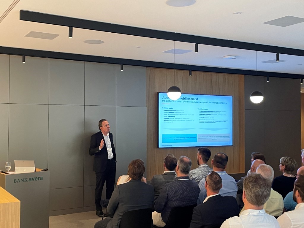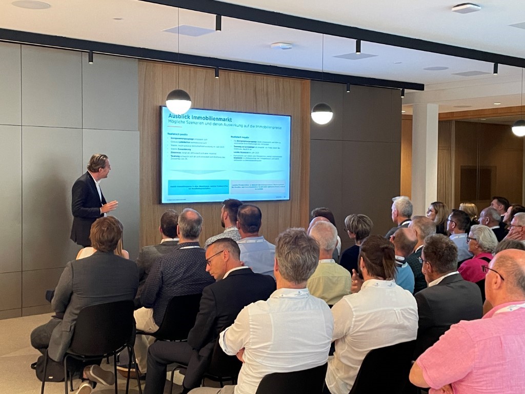 Abschliessend gewährte uns André Wegmann noch einen Ein- und Ausblick in den Immobilienmarkt des Kantons Zürich. Unsere Mitglieder und Gäste lauschten aufmerksam den möglichen Szenarien und deren Auswirkungen auf die Immobilienpreise.