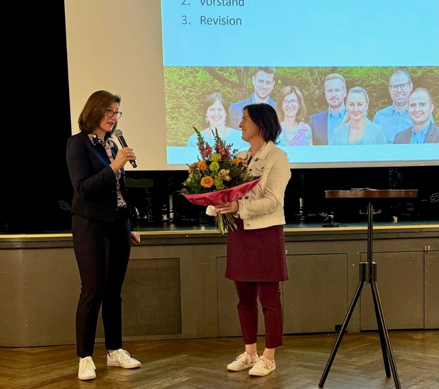 Stefanie Glatt hat seinen Rücktritt aus dem Vorstand eingereicht. Sandra Elliscasis dankt Stefanie für die wertvolle Arbeit zu Gunsten des Wirtschaftsforums.