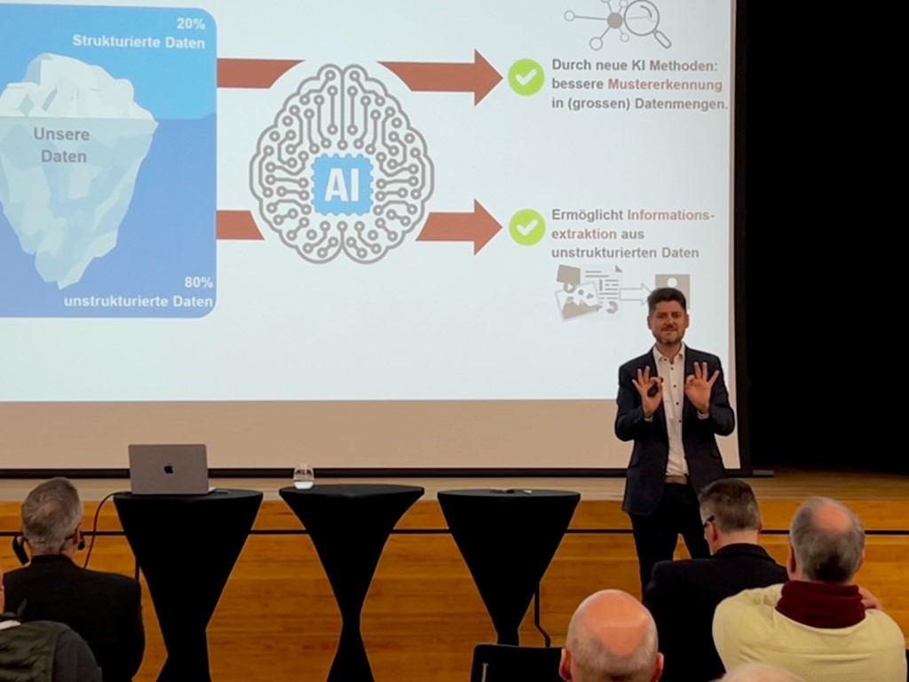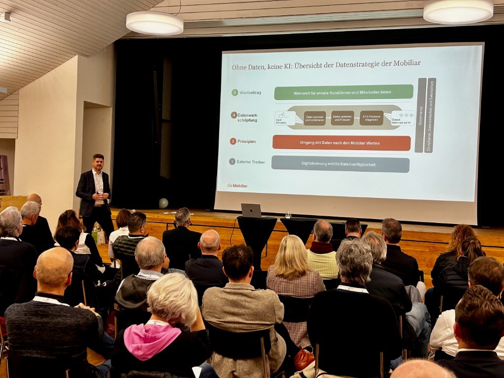 Weit weniger kritisch beleuchtete Tom Walther das Thema KI. Das liegt aber auch an seiner Funktion - als Leiter Daten & Analytik der Mobilar erklärte er uns die Datenstrategie des Versicherungsunternehmens.
